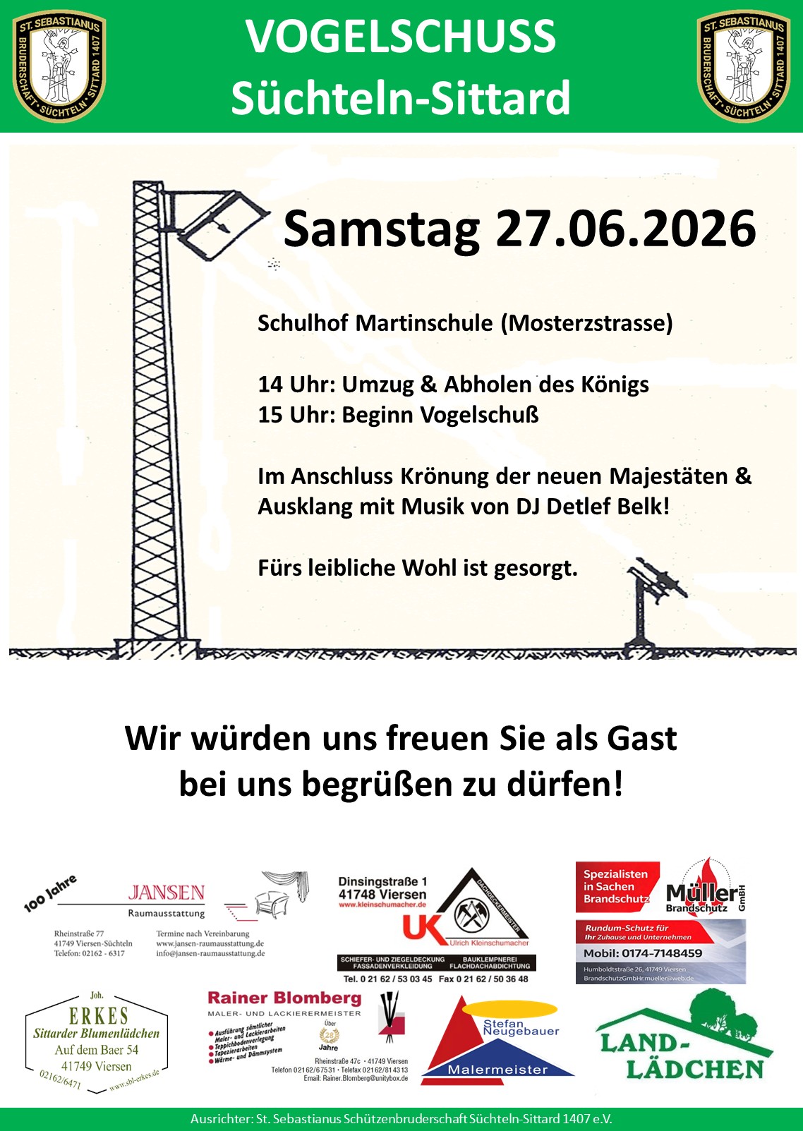 Endlich haben wir unsere Genehmigung und können verkünden, dass der diesjährige Vogelschuss auf dem Schulfhof der Martinschule stattfinden wird.